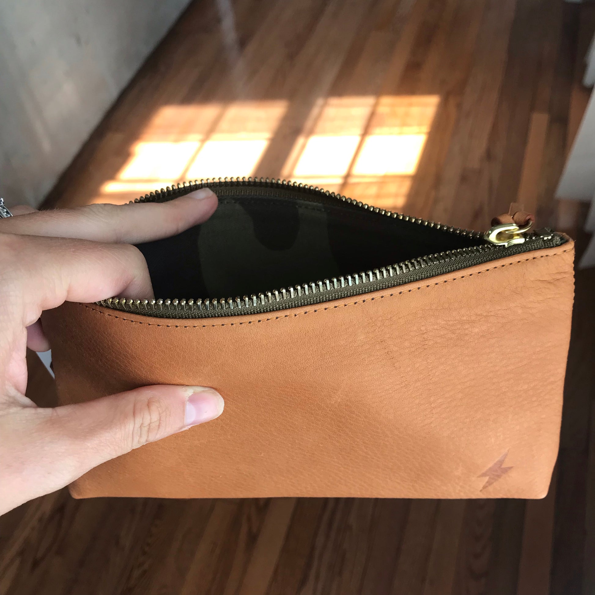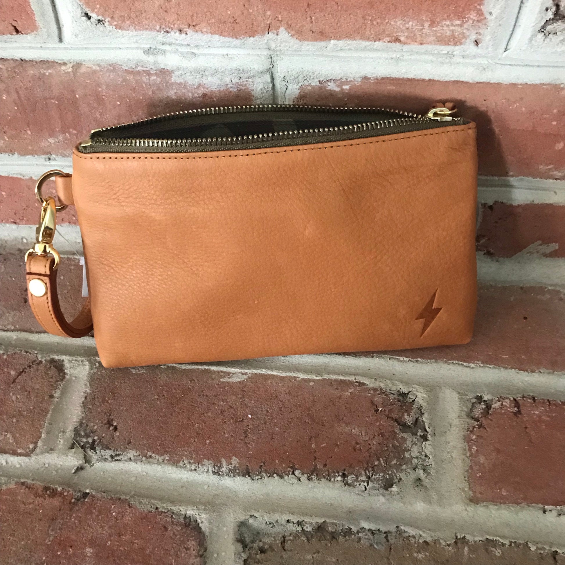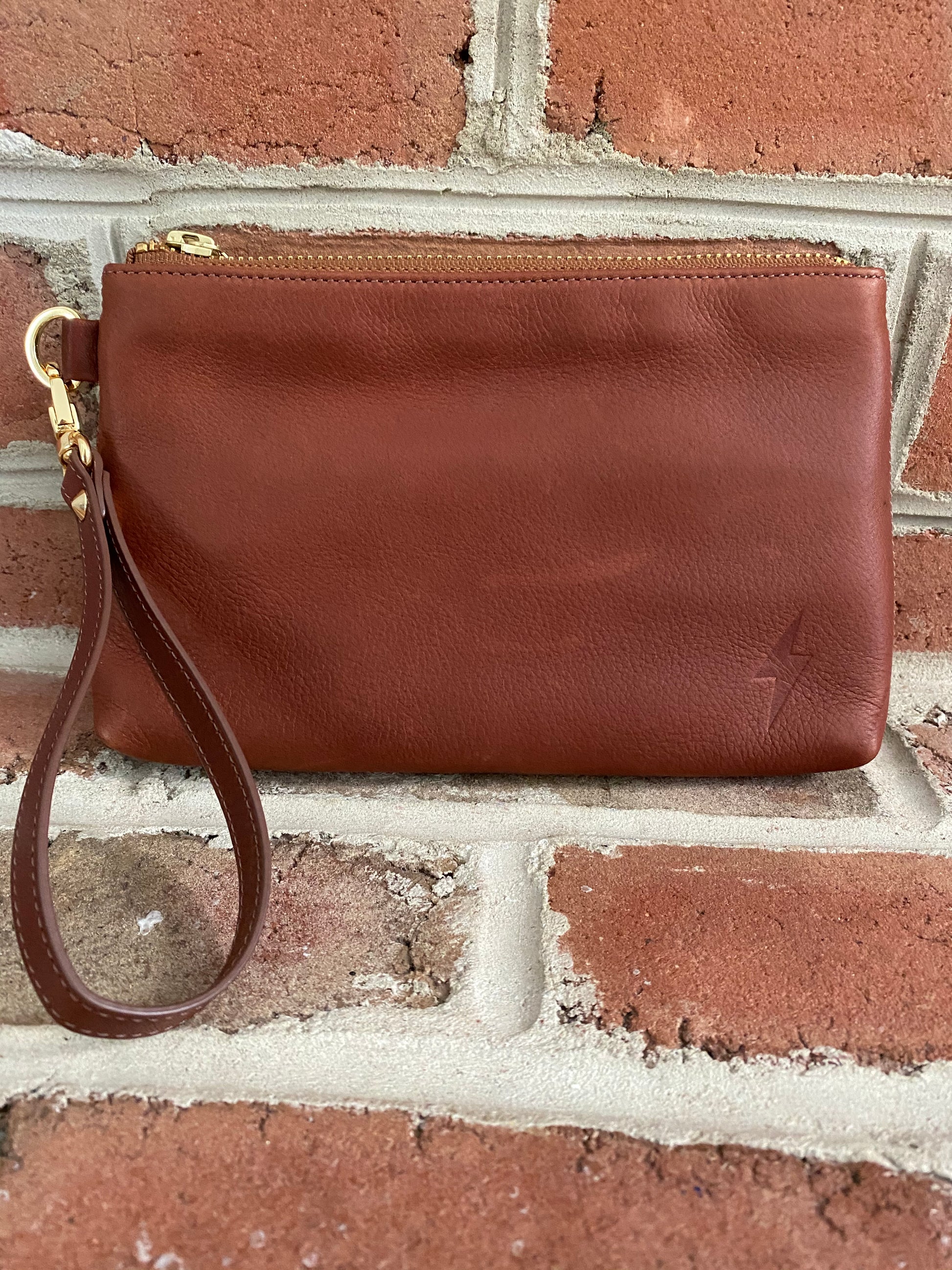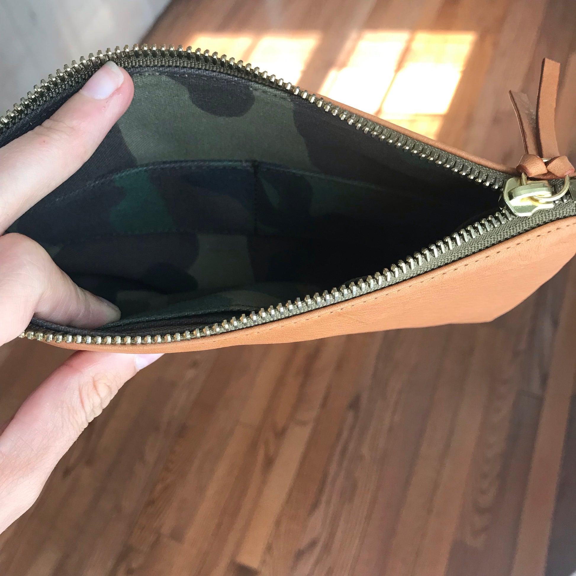 100% sourced and produced in the USA, these clutches can be purchased in the light brown (Whiskey) or the dark brown (Brandy) color. Both come with the camouflage pattern as the inner lining.